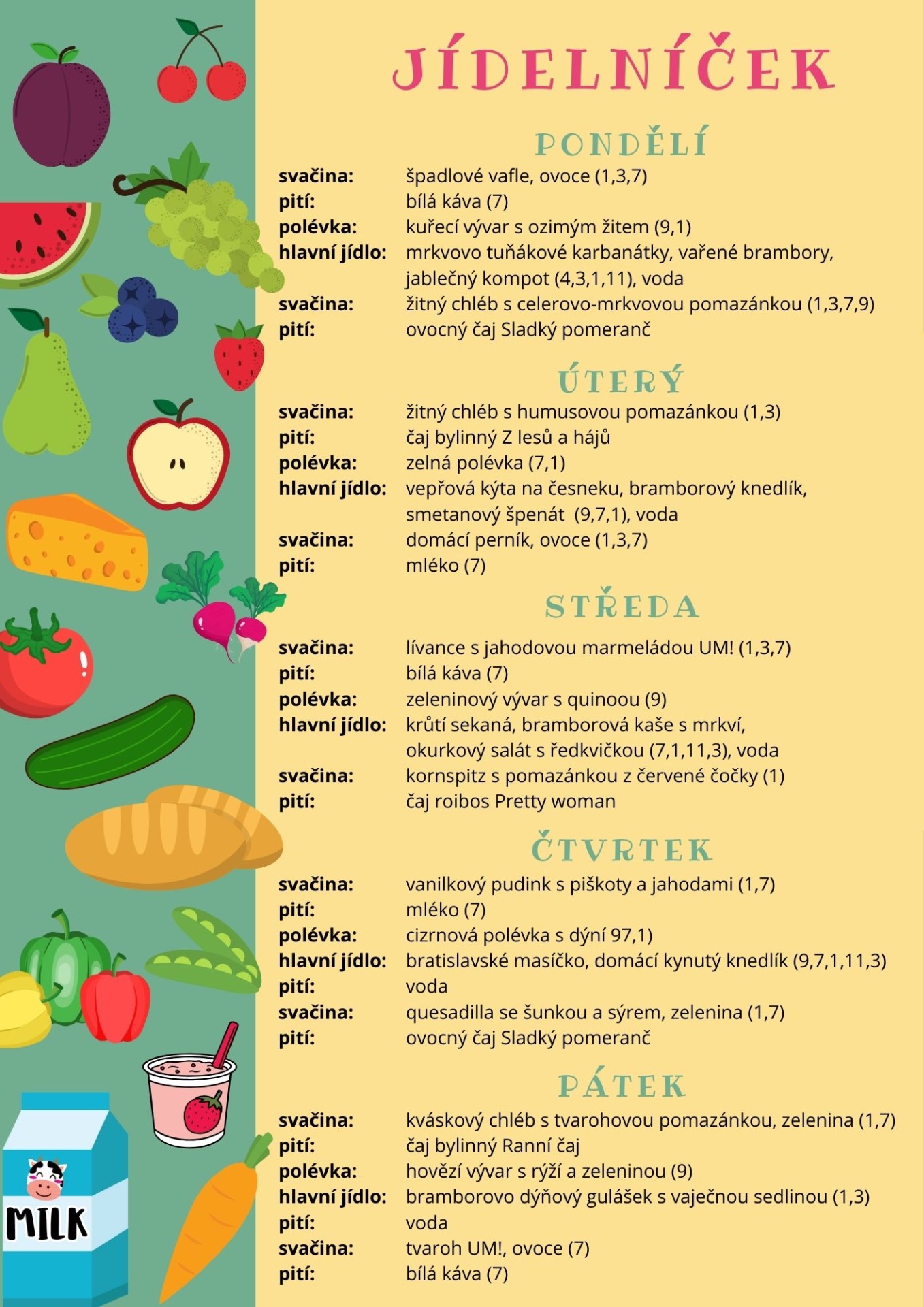 Vítejte v sekci, kde se rozhoduje o nejdůležitější věci dne: Co je dnes k obědu?Naše kuchyně se snaží dětem servírovat jídla, která nejen vypadají k snědku, ale také mají šanci přežít na první pohled malého kritika. A protože víme, že každé dítě je malý gurmán se silnými názory, máte zde přehled toho, co u nás tento týden léta na talíř.